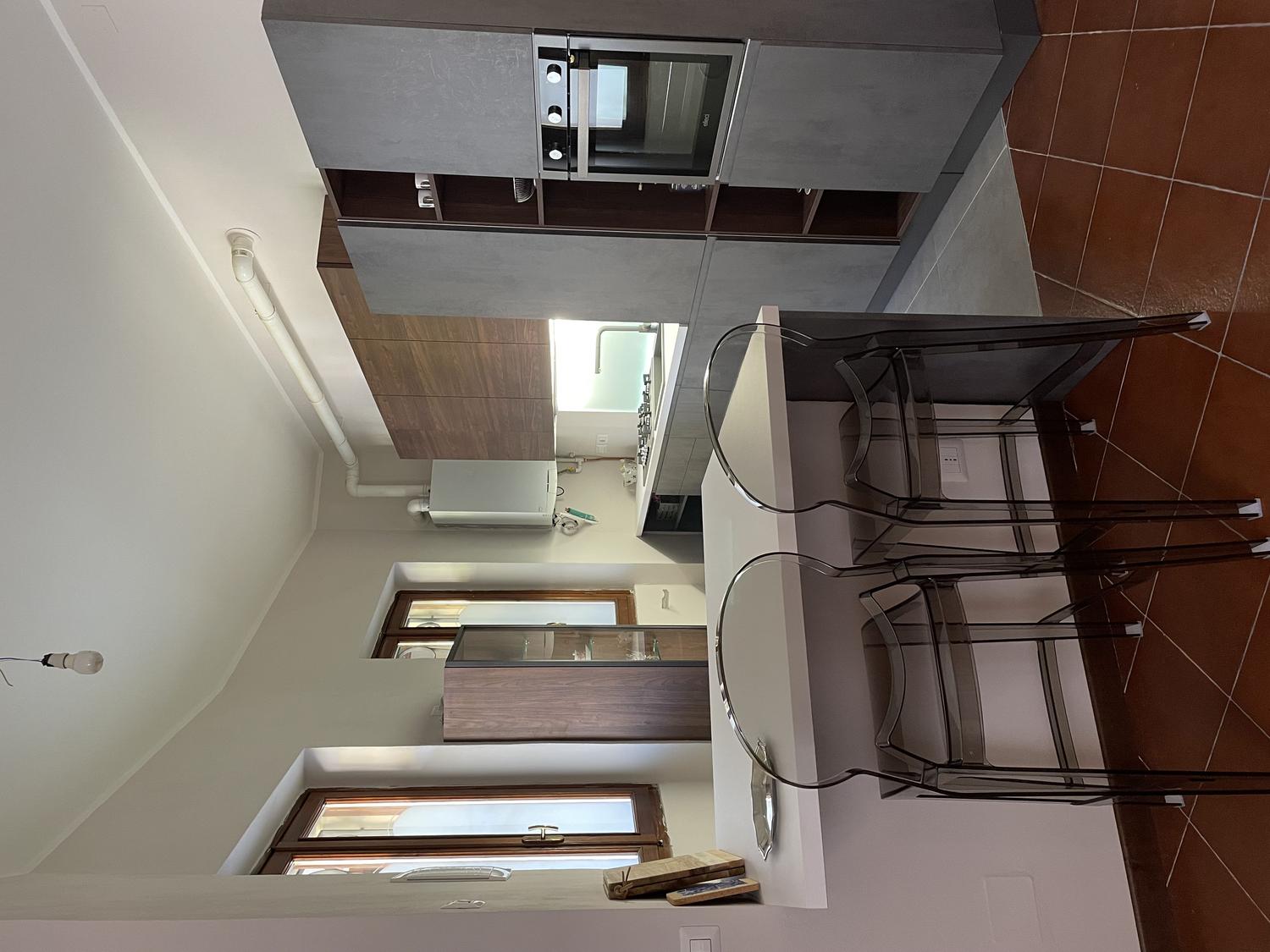 Una cucina compatta ripensata per una cuoca: più spazio operativo, un bancone su misura con cantinetta nascosta e una lavastoviglie finalmente integrata grazie all’abbattimento strategico di un muro.
