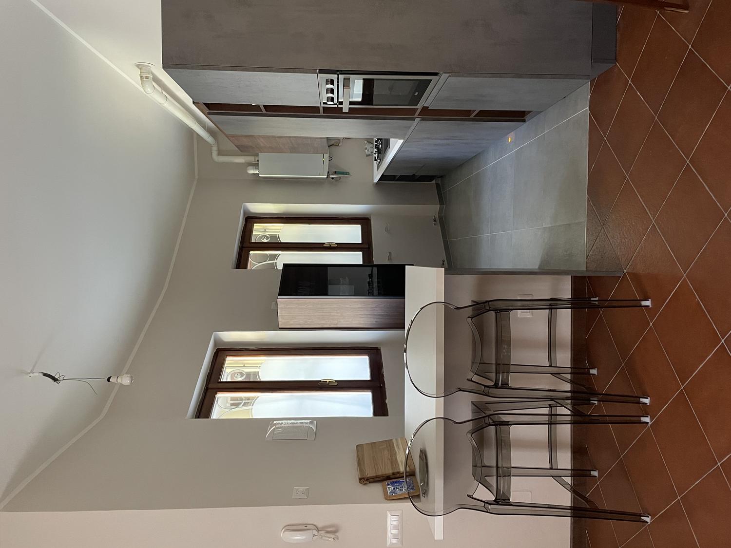 In questo progetto di ristrutturazione della cucina per la cuoca piacentina M., l’obiettivo principale è stato quello di ricavare il massimo spazio possibile per il piano di lavoro. La sfida invece, è stata integrare una lavastoviglie, precedentemente assente a causa delle dimensioni ridotte della cucina. Il layout dello spazio è stato quindi ripensato: grazie all’abbattimento del muro tra soggiorno e cucina, è stato possibile inserire un ampio bancone da lavoro che nasconde una cantinetta e aumentare i moduli della cucina lineare.