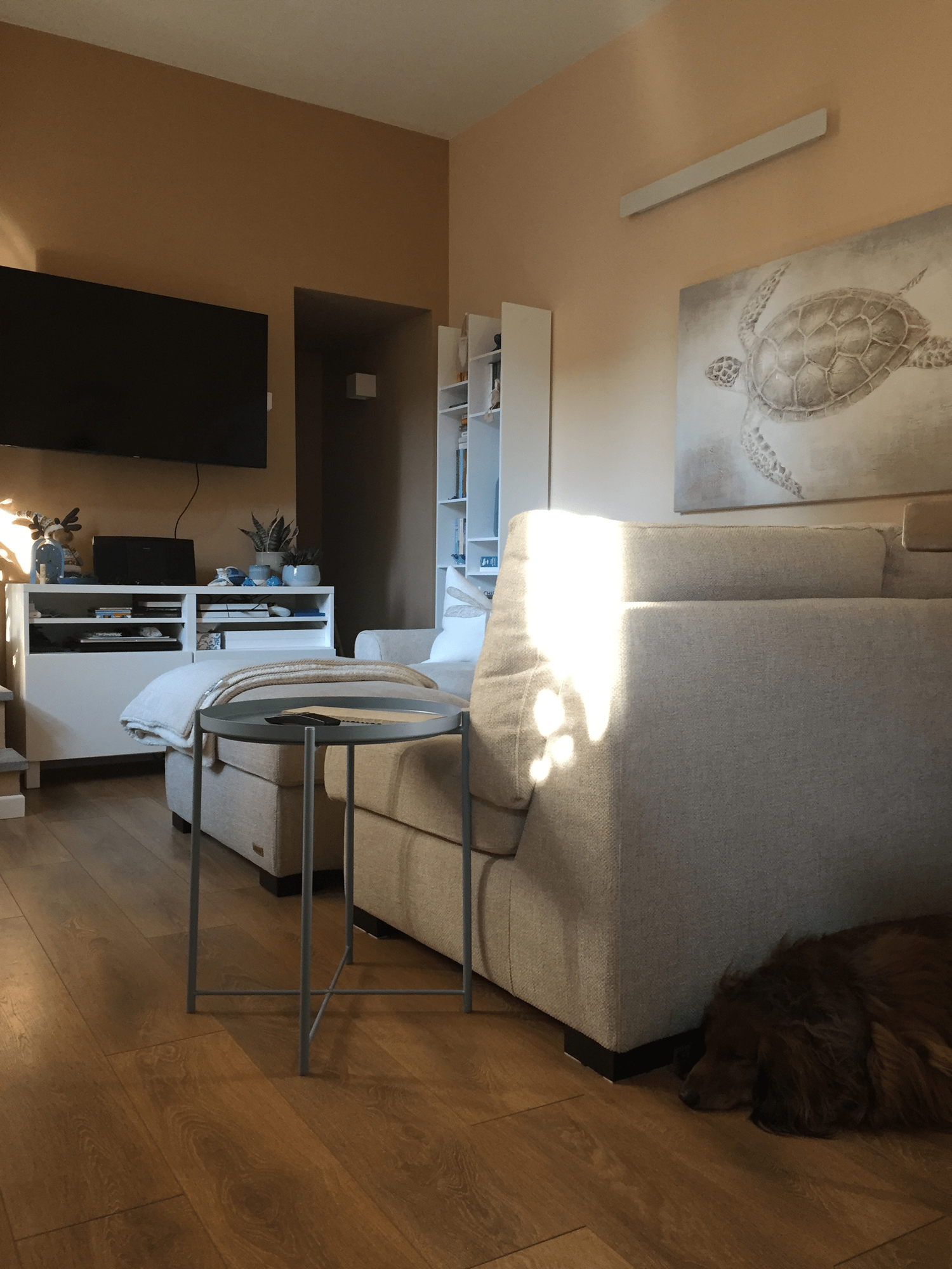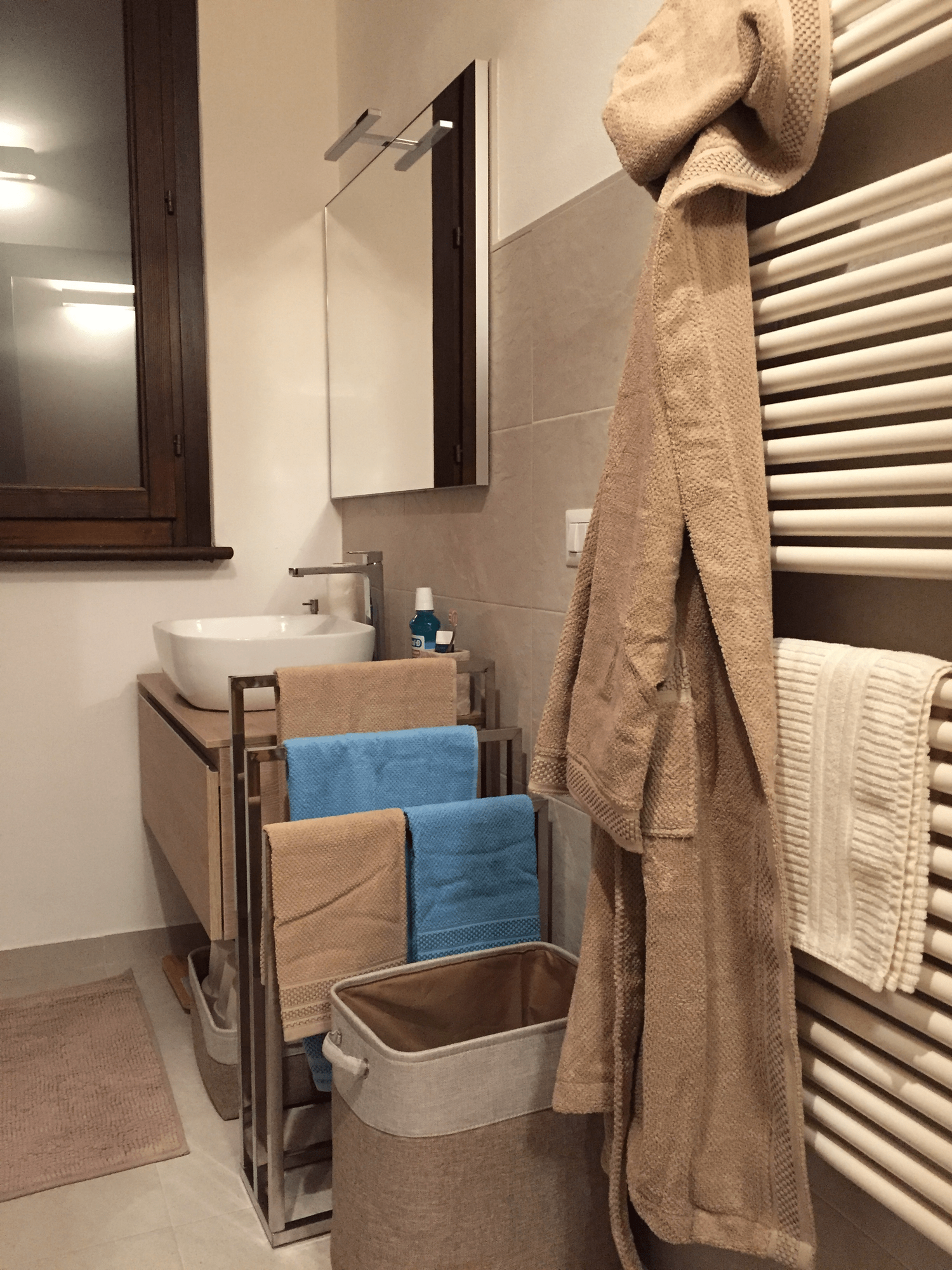 L’esigenza della giovane coppia era quella di trasformare la loro prima casa in un nido accogliente che li rappresentasse. Sono stati ripensati i materiali per pavimenti e rivestimenti, riconfigurato il bagno e ridefinito il layout dell’arredamento. Il legno, insieme ai colori bianco, beige e azzurro, costituisce il filo conduttore e caratterizzante di tutti gli ambienti.
